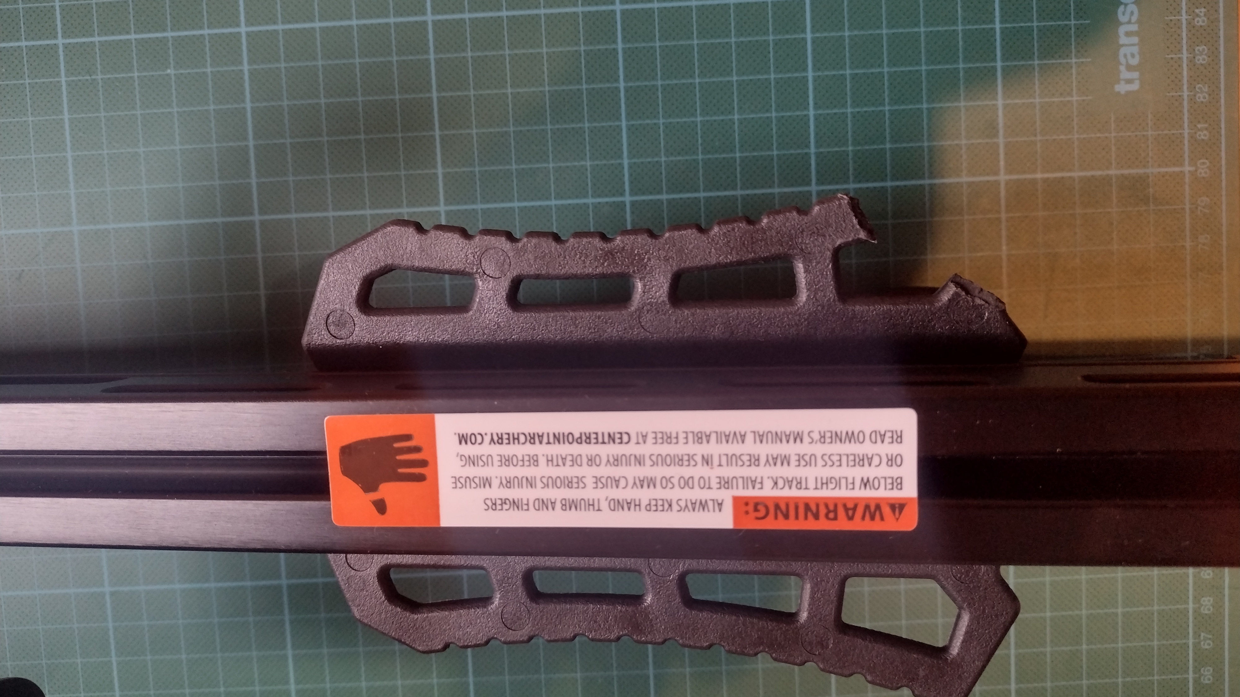 Die Armbrust hatte eine leichten Transportschaden: Eine kleine Ecke vom Handschutz ist abgebrochen und der Trittbügel hat einen Kratzer/ein kleines Loch in der oberen Gummibeschichtung. (Sehen Sie die Bilder). Ansonsten ist die Armbrust neu, ungebraucht und voll funktionsfähig.