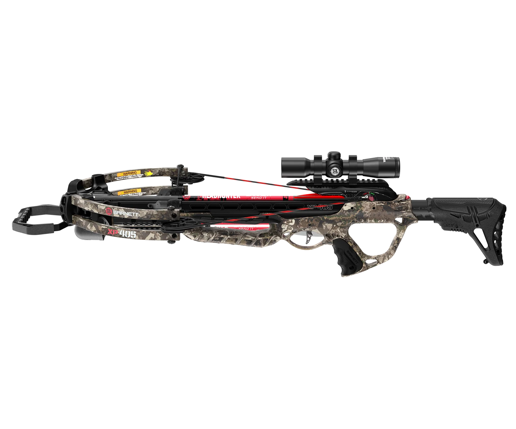 Die neue XP405 Armbrust besticht durch ihr kompaktes, leichtes Design mit seitlich montierbarem Köcher für einfachen Transport und optimale Handhabung. Der 5-fach verstellbare Hinterschaft ermöglicht dem Jäger die Schaftlänge individuell anzupassen. Ausgestattet mit beidseitiger Sicherung, TriggerTech-Abzug mit Leerschusssicherung und durchgehender Handballenauflage mit Fingermulden für maximale Sicherheit. Der Abzug ist sehr leicht zu betätigen. Beeindruckende Pfeilgeschwindigkeit von 123 m/s (405 fps). Gewaltige kinetische Energie und Durchschlagskraft beim Treffen.