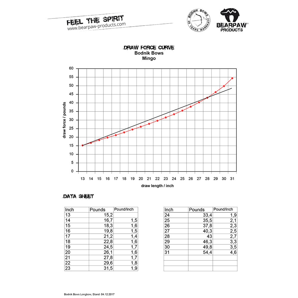 Bei dem Mingo handelt es sich um einen kurzen Jagdrecurve-Bogen. Wie bei vielen anderen Bodnik Bögen bekommt man auch hier einen Bogen mit einer Top Leistung und einem wirklich schönen Aussehen. Die Wurfarme bestehen aus einer Kombination aus Bambus und Erlenfurnier und sind nochmal mit einer Außenschicht aus Power Glas gefertigt. So erreicht der Bogen auch bei kürzeren Auszugslängen seine volle Power. Der Griff liegt gut in der Hand und ermöglicht eine gute Kontrolle des Bogens. Gefertigt wird der Griff aus Actionwood und rundet dadurch die den Gesamteindruck des Bogens komplett ab. Trotz seiner kurzen Gesamtlänge, lässt sich dieser Bogen wirklich sehr gut ausziehen und erreicht sogar bei 27 Zoll Auszugslänge sehr hohe Pfeilgeschwindigkeiten. Gute Leistung, gutes Aussehen. Ein top Bogen.